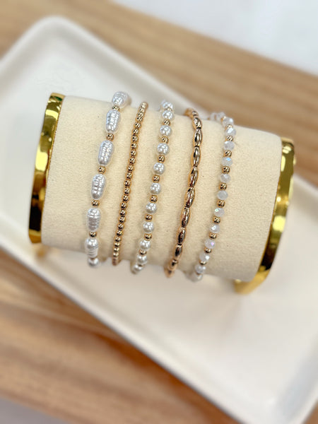 Mix and match your way to coastal perfection with this versatile bracelet set. Choose between gleaming silver or warm gold finishes, then customize with lustrous pearls, beads in various sizes, and shapes that speak to your style. Stack them, layer them, or wear them solo—each combination tells a different story.