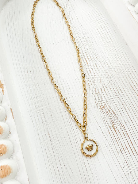Buzz into gratitude with this charming Bee Grateful Necklace! Featuring an adorable bee pendant suspended from an antique gold chain.