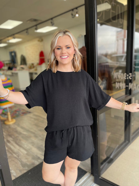 Slip into effortless vibes with this flowy black essential. Crafted from breathable material that moves with you, it's the perfect piece for those days when comfort meets style.
