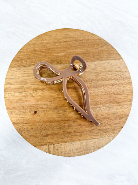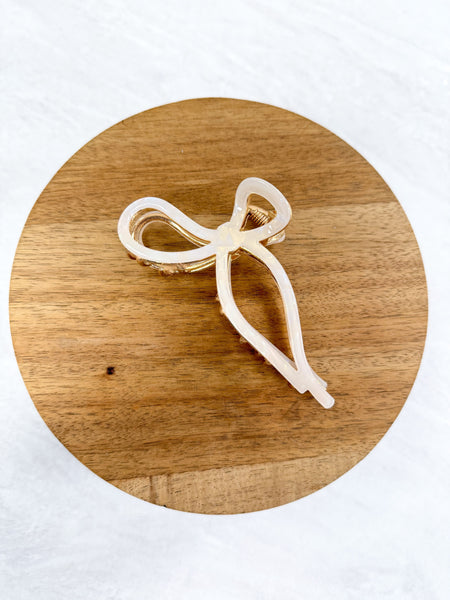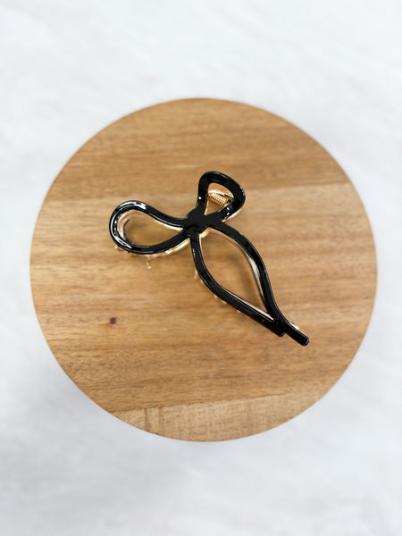 The Blissful Bow Clip is a stylish metal claw clip available in three colors: black, ivory iridescent, and blue toile. Its secure grip keeps your hair in place comfortably, making it perfect for everyday wear or special occasions. Choose your favorite color to add a subtle, elegant touch to your hairstyle.