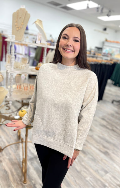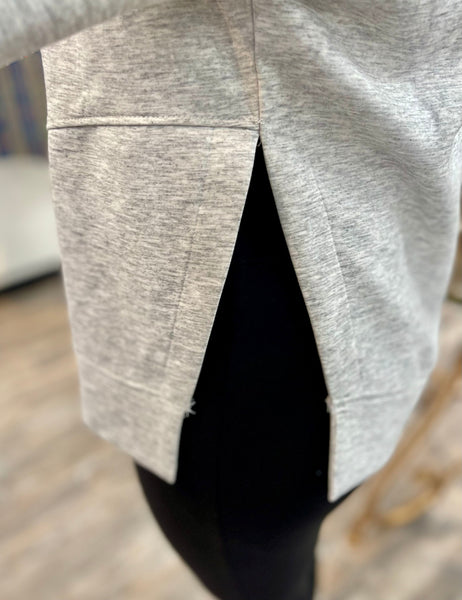 Get cozy and cute with the Everyday Essential Top! This playful sweatshirt, available in heather grey or jade, features a flirty high slit that's perfect for pairing with your favorite leggings. Whether you're lounging or out and about, this versatile top adds a fun twist to your comfy style.